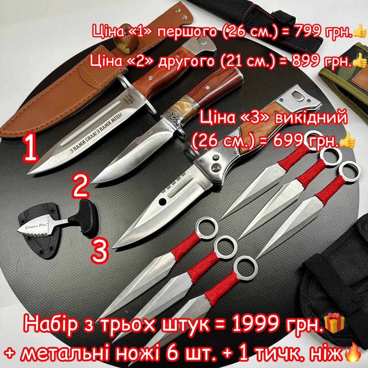 Ціна за комплект з трьох ножів = 1999 грн. + подарунок метальні ножі 6 шт.👍